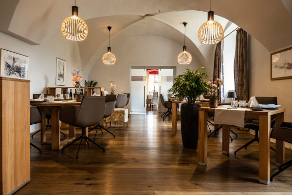 Im Erdgeschoss wurde ein Restaurantbetrieb eingerichtet, der ganzjährig die repräsentativen Räumlichkeiten im Schloss und dem Nebengebäude für Feierlichkeiten, Firmen- und Familienjubiläen u. andere Anlässe anbieten kann!